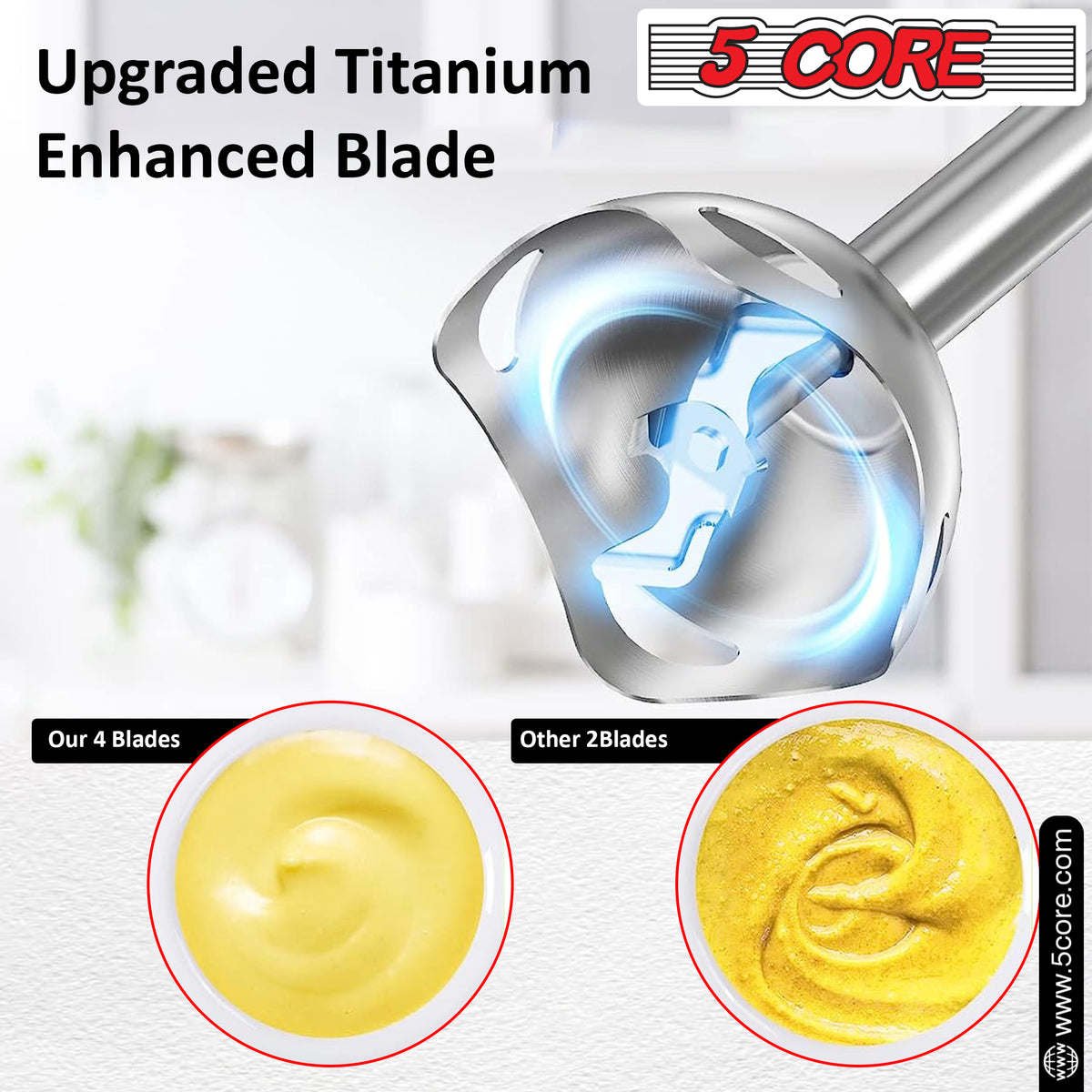 5 Core Handheld Blender, Electric Hand Blender 8-Speed 500W, Immersion Hand Held Blender Stick with Food Grade Stainless Steel Blades for Perfect Smoo